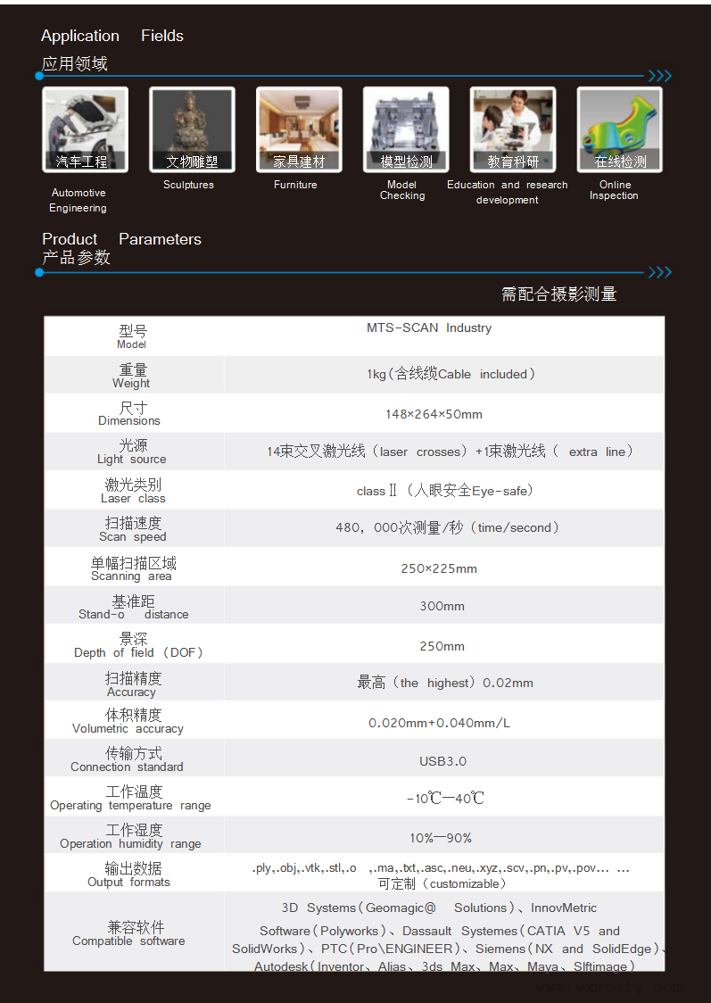 MTS-SCAN771手持式三维激光扫描仪有手持高精度的特