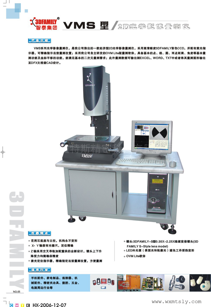 三:超值经济型手动2D光学影像测量仪VMS250成像系统- 3DFamily-S高解析度彩色CCD